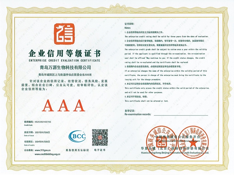 青島萬源生物獲得企業(yè)信用等級(jí)證書榮譽(yù)。旗下貝殼粉品牌琴島因此獲得品牌成長。