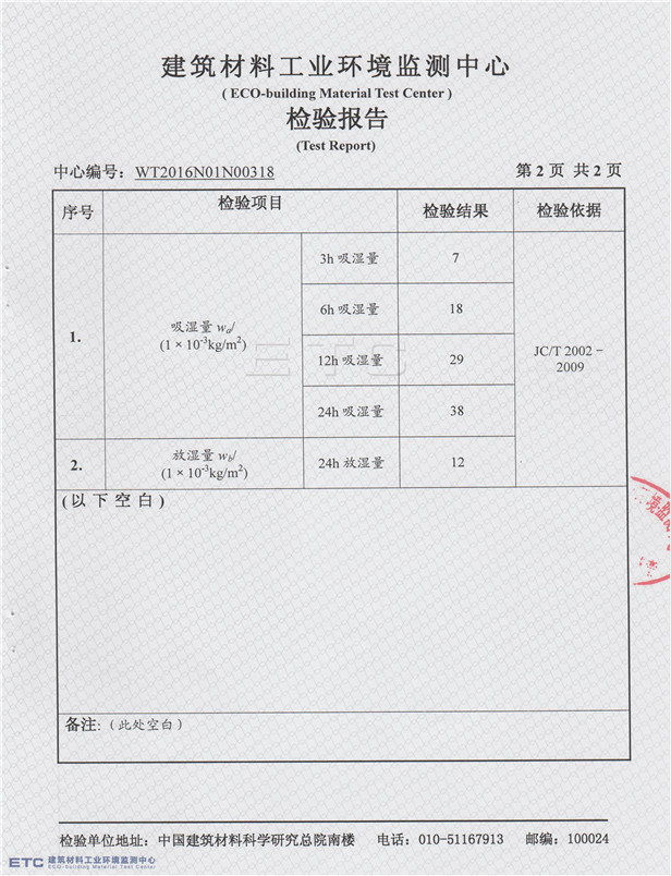 檢驗依據:JC/T 2002-2009《建筑材料吸放濕性能測試方法》